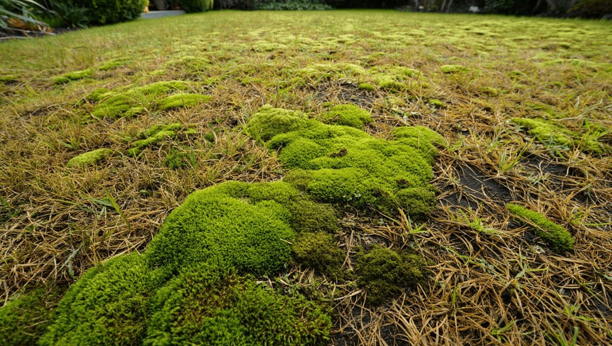 La mousse s’installe quand le sol laisse peu d’espace aux racines de l’herbe. Un terrain tassé par les pluies d’hiver ou par le passage fréquent sera moins drainant et favorisera la mousse.